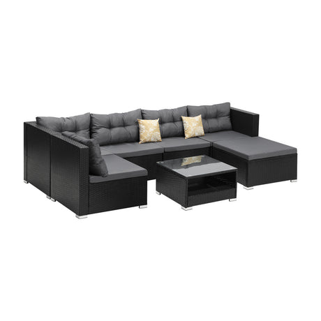 Livsip Outdoor Lounge Setting 7pc Wicker Sofa Set Rattan