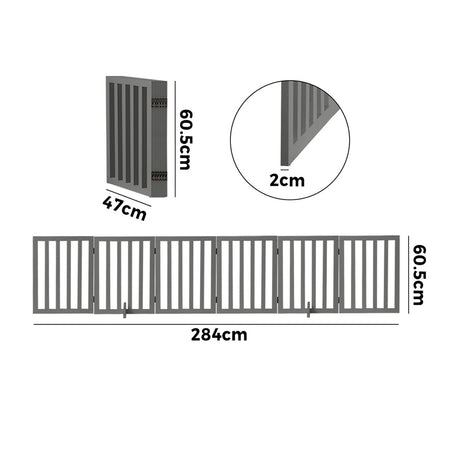 Alopet Wooden Pet Gate Dog Fence 6 Panels 80cm Grey