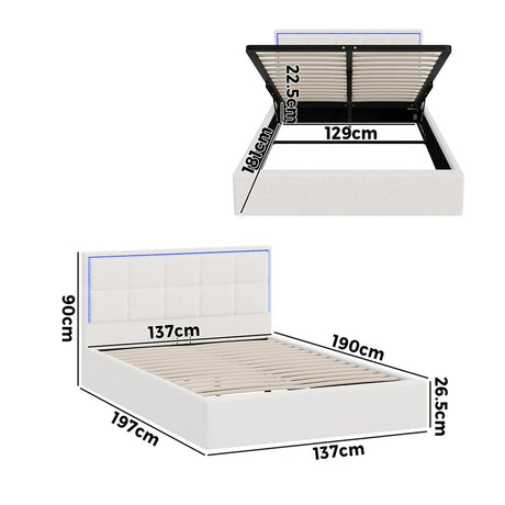 - Dddrop - Oikiture Bed Frame Double Size RGB LED Gas Lift Storage Base White Boucle $382.99 AUDUnit price /UnavailableVery low stock (3 units)