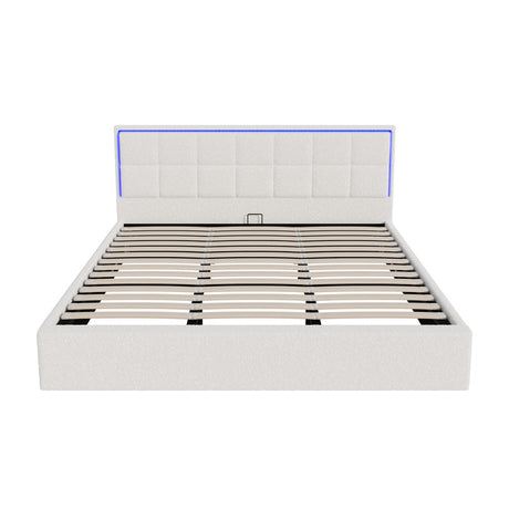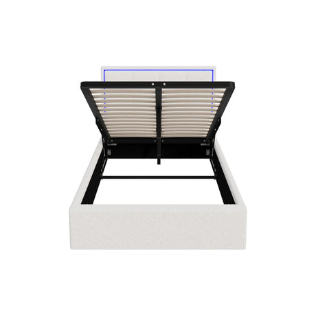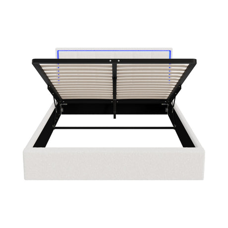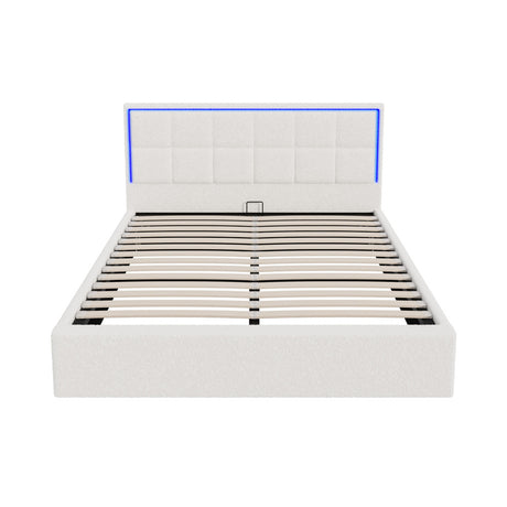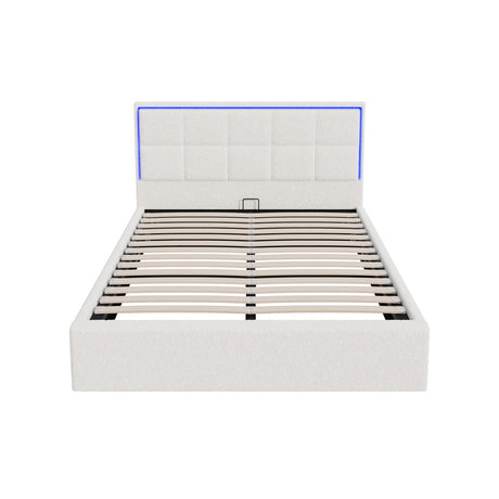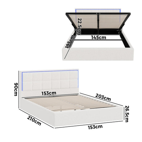 - Dddrop - Oikiture Bed Frame Queen Size RGB LED Gas Lift Storage Base White Boucle $409.99 AUDUnit price /UnavailableVery low stock (4 units)