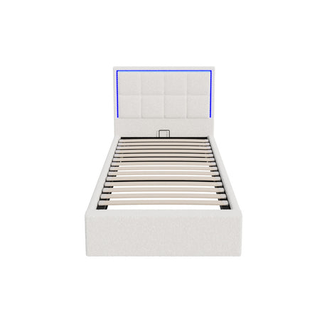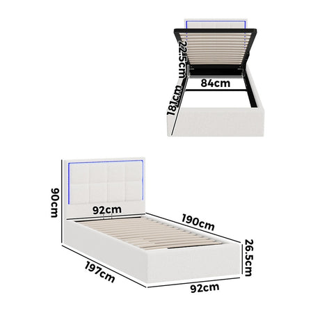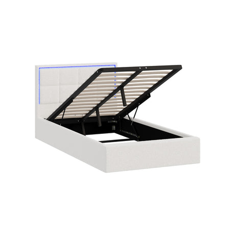 - Dddrop - Oikiture Bed Frame Single Size RGB LED Gas Lift Storage Base White Boucle $317.99 AUDUnit price /UnavailableVery low stock (1 unit)