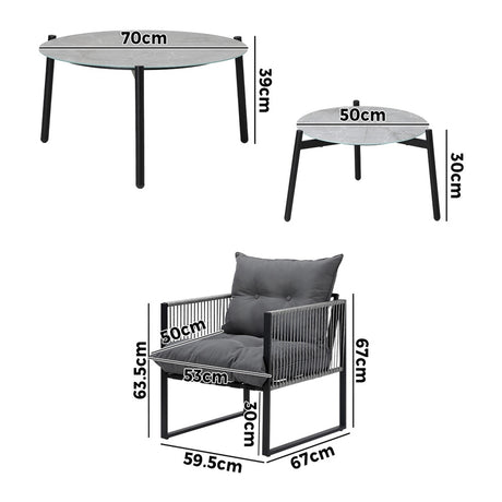 - Dddrop - Livsip 3PCS Outdoor Patio Set Grey 70cm Table Cushioned Armchairs $286.99 AUDUnit price /UnavailableVery low stock (4 units)