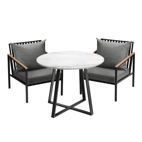 Livsip 3PCS Outdoor Dining Set 90cm Table Lounge Chairs