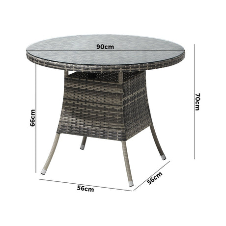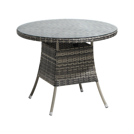 Livsip 90CM Outdoor Dining Table Glass Tabletop Grey Rattan