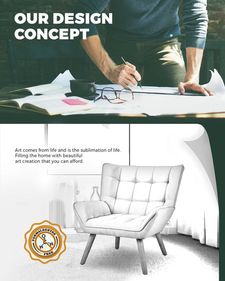 Oikiture Armchair Lounge Sofa Chair Fabric Accent Chairs Armchairs Couches Grey