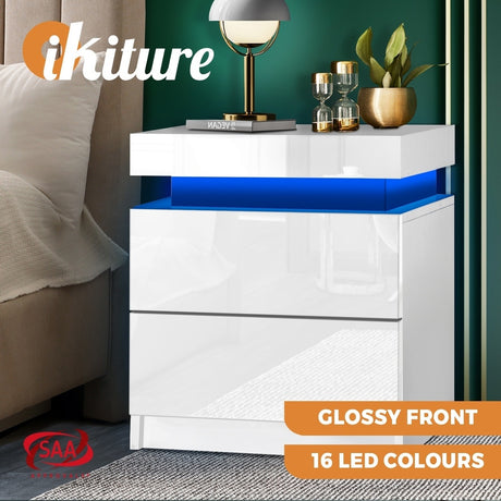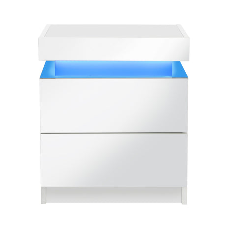 Oikiture Bedside Table RGB LED 2 Drawers White