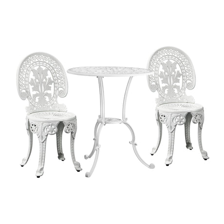 Livsip Outdoor Set Cast Aluminium Table and Chair 3PCS White