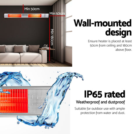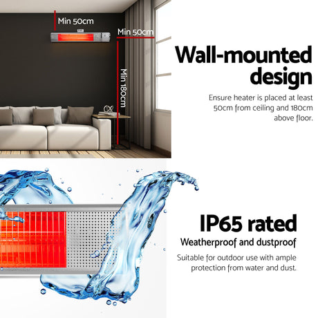 Devanti Electric Strip Heater Infrared Radiant Heaters 2000W