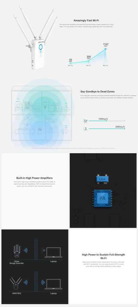 WAVLINK AC1200 Dual Band Wi-Fi Range Extender with Gigabit Ethernet Ports (WL-WN579G3)