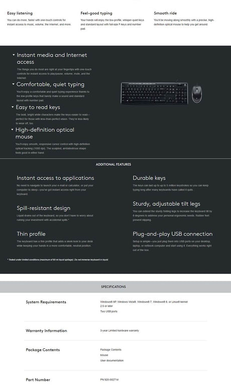 Logitech MK200 Wired Keyboard and Mouse Combo with 1000dpi Sensitivity