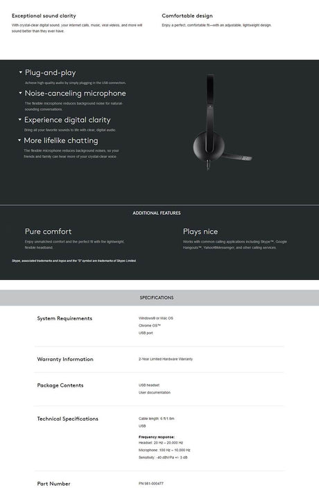 Logitech H340 Stereo USB Headset with Rotating Microphone