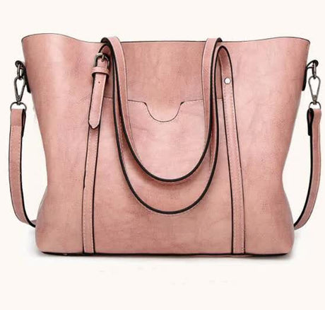 Elegant PU Leather Tote Bag with Detachable Strap - Pink