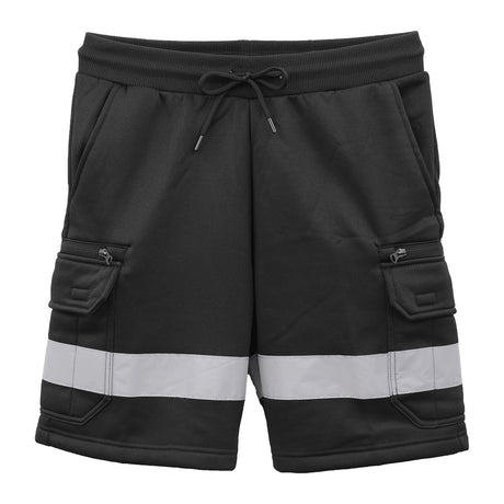Hi Vis Fleece Work Cargo Shorts w Reflective Tape Workwear Tradie Utility Pants, Black, L