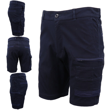 Mens Cargo Cotton Drill Work Shorts UPF 50+ 13 Pockets Tradies Workwear Trousers, Black, 34
