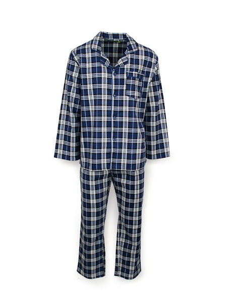 Mens Flannelette Pyjama Set Sleepwear Soft 100% Cotton PJs - Blue Check - XXL