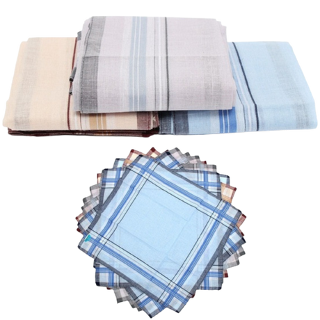 Mens HANDKERCHIEFS 100% Cotton Pocket Square Hanky Handkerchief 35x35cm - 12 Hankies