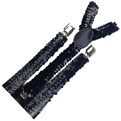 6x Mens Suspenders Braces Adjustable Strong Clip On Elastic Formal Wedding BULK - Black (Sequin)