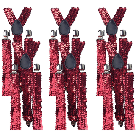 6x Mens Suspenders Braces Adjustable Strong Clip On Elastic Formal Wedding BULK - Red (Sequin)