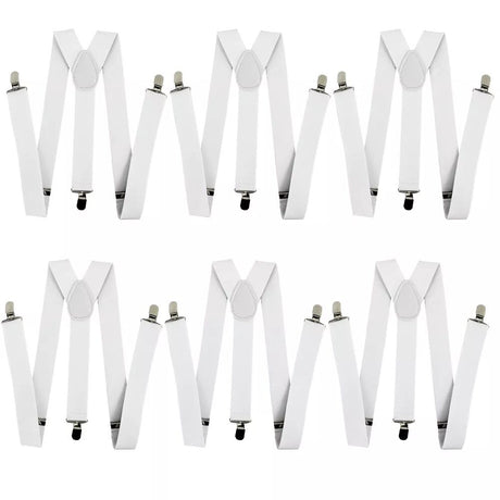 6x Mens Suspenders Braces Adjustable Strong Clip On Elastic Formal Wedding BULK - White