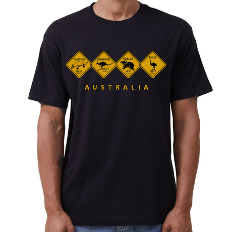 Adult Unisex 100% Cotton T Shirt Australia Wildlife Road Sign Souvenir Tee Tops, Black, XL