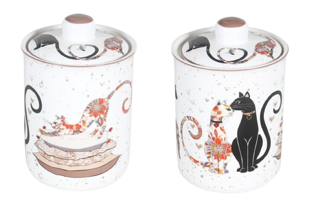 Cat Couple Embossed Canisters — Bone China Storage Set + Matching Napkins