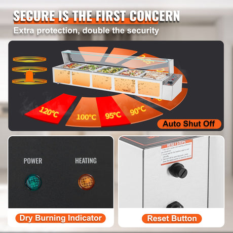 VEVOR Commercial Electric Food Warmer Countertop Buffet 5*8Qt with Glass Shield