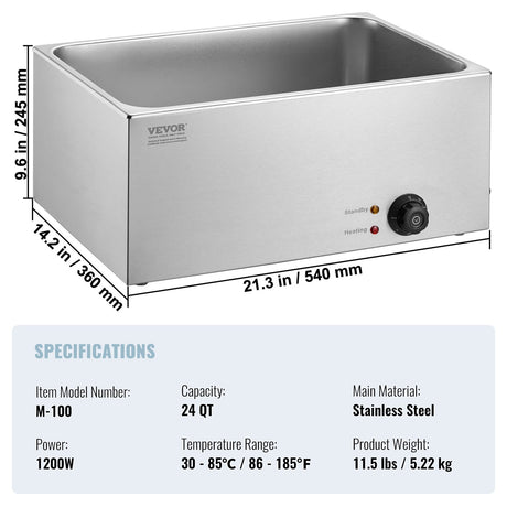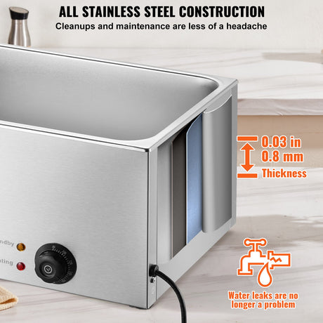 VEVOR Commercial Electric Food Warmer Countertop Buffet 18L 1200W Bain Marie