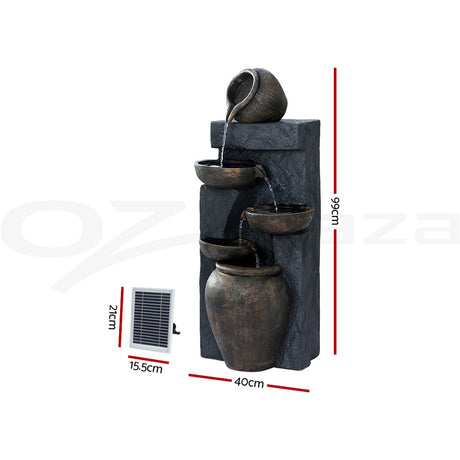 Gardeon Solar Water Feature Cascading Fountain 3-Tier Pot LED Lights 76CM Grey