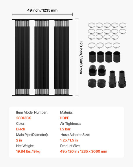 VEVOR Solar Pool Heater 1235 x 3100mm Aboveground & Inground Pool Heating System