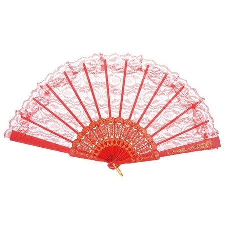 Graceful Crimson Lace Hand Fan - Perfect for Weddings and Bridal Events