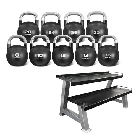 CORTEX 8kg to 32kg Commercial Steel Kettlebell V2 Package with Kettlebell Stand