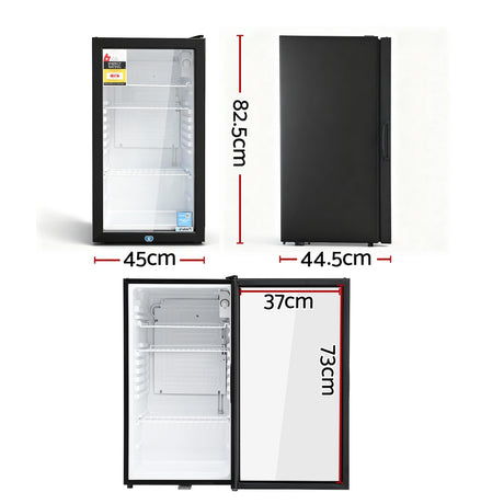 Devanti 105L Bar Fridge Glass Door Mini Fridge Countertop Cooler Black