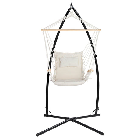 Gardeon Hammock Chair with Steel Stand Armrest Outdoor Hanging Cream