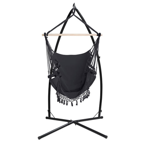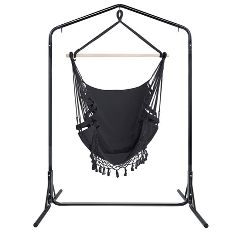 Gardeon Hammock Chair with Steel Stand Hanging Outdoor Tassel Grey