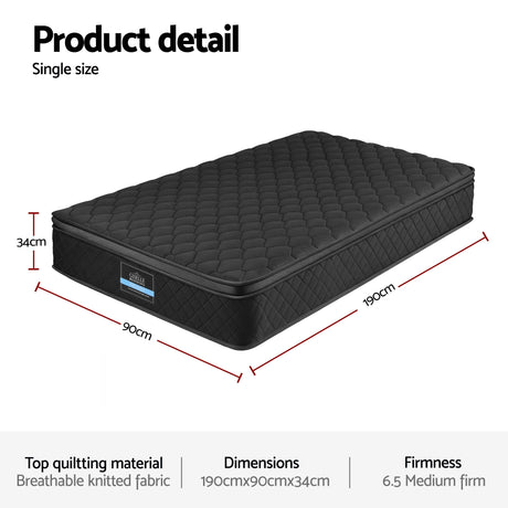 Giselle Bedding Mattress 34cm 5-Zone Pocket Spring Egg-crate Memory Foam Single
