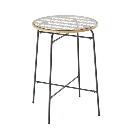 Gardeon Outdoor Bar Table Wicker Dining Bistro Patio Balcony Glass Table Steel