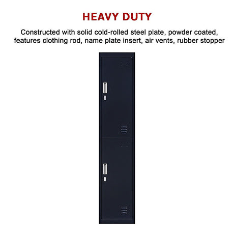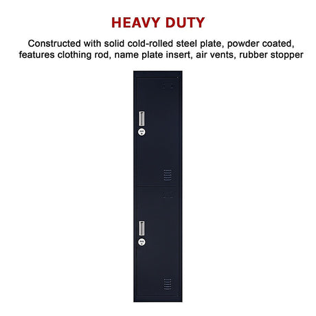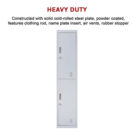 2-Door Vertical Locker for Office Gym Shed School Home Storage