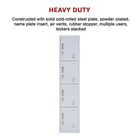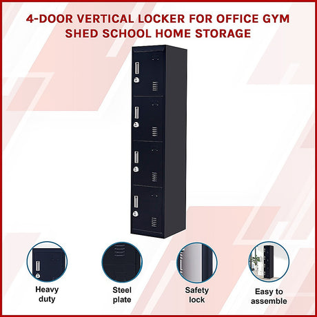 4-Door Vertical Locker for Office Gym Shed School Home Storage