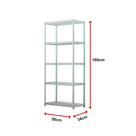 5 Tier Silver Metal Storage Rack Shelving Wire Shelf