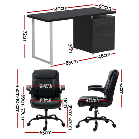 Artiss Computer Desk Executive Office Chairs Sets Black