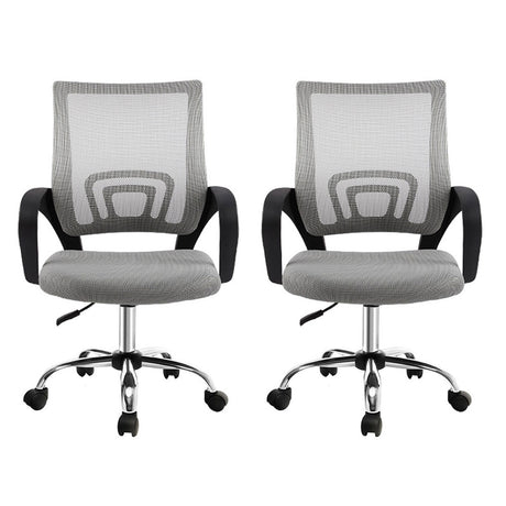 Artiss 2x Mesh Office Chair Mid Back Grey