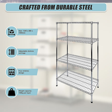 Modular Wire Storage Shelf 1200 x 450 x 1800mm Steel Shelving