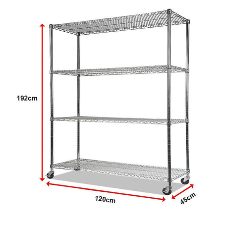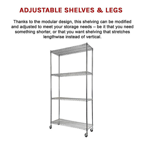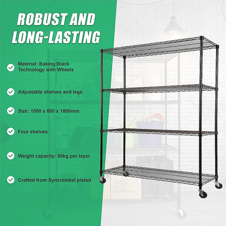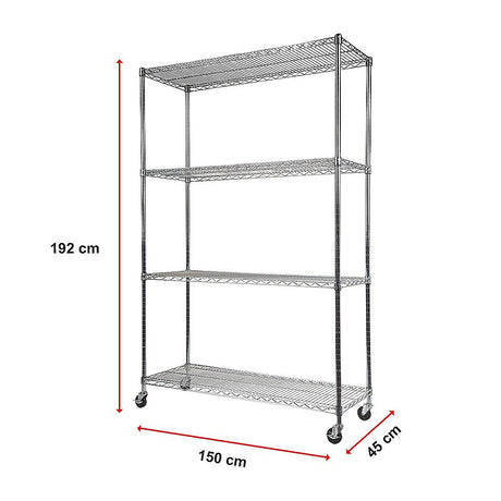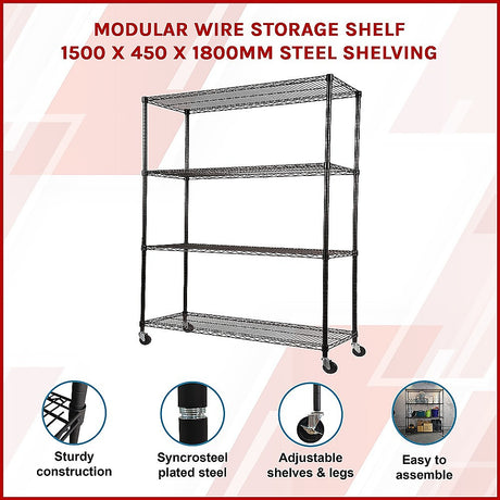 Modular Wire Storage Shelf 1500 x 450 x 1920mm Steel Shelving with Wheels