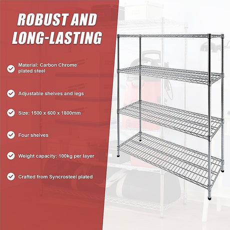 Modular Wire Storage Shelf 1500 x 600 x 1800mm Steel Shelving