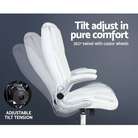 Artiss Office Chair Conference Chairs PU Leather High Back White