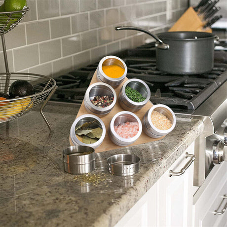 Magnetic Triangular Bamboo Spice Rack & Jars For Kitchen Storage