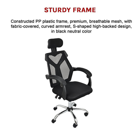 Office Chair Gaming Computer Chairs Mesh Back Foam Seat - Black