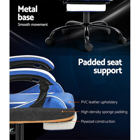Artiss Gaming Office Chair Executive Computer Leather Chairs Footrest Blue White