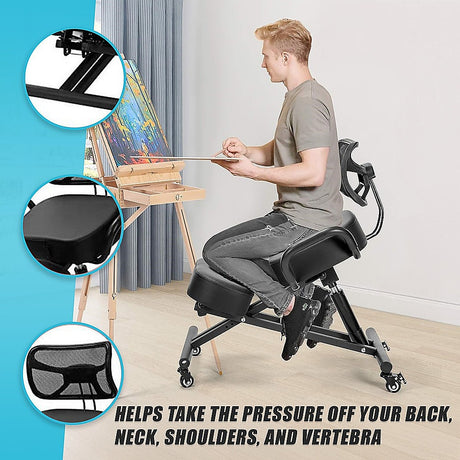 Ergonomic Kneeling Posture Chair with Backrest Adjustable Height and Casters