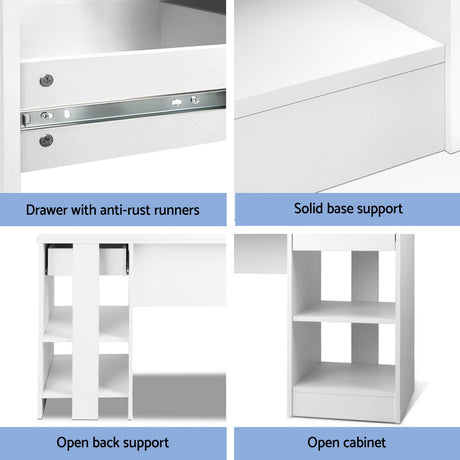 Artiss Computer Desk Drawer Shelf Cabinet White 120CM